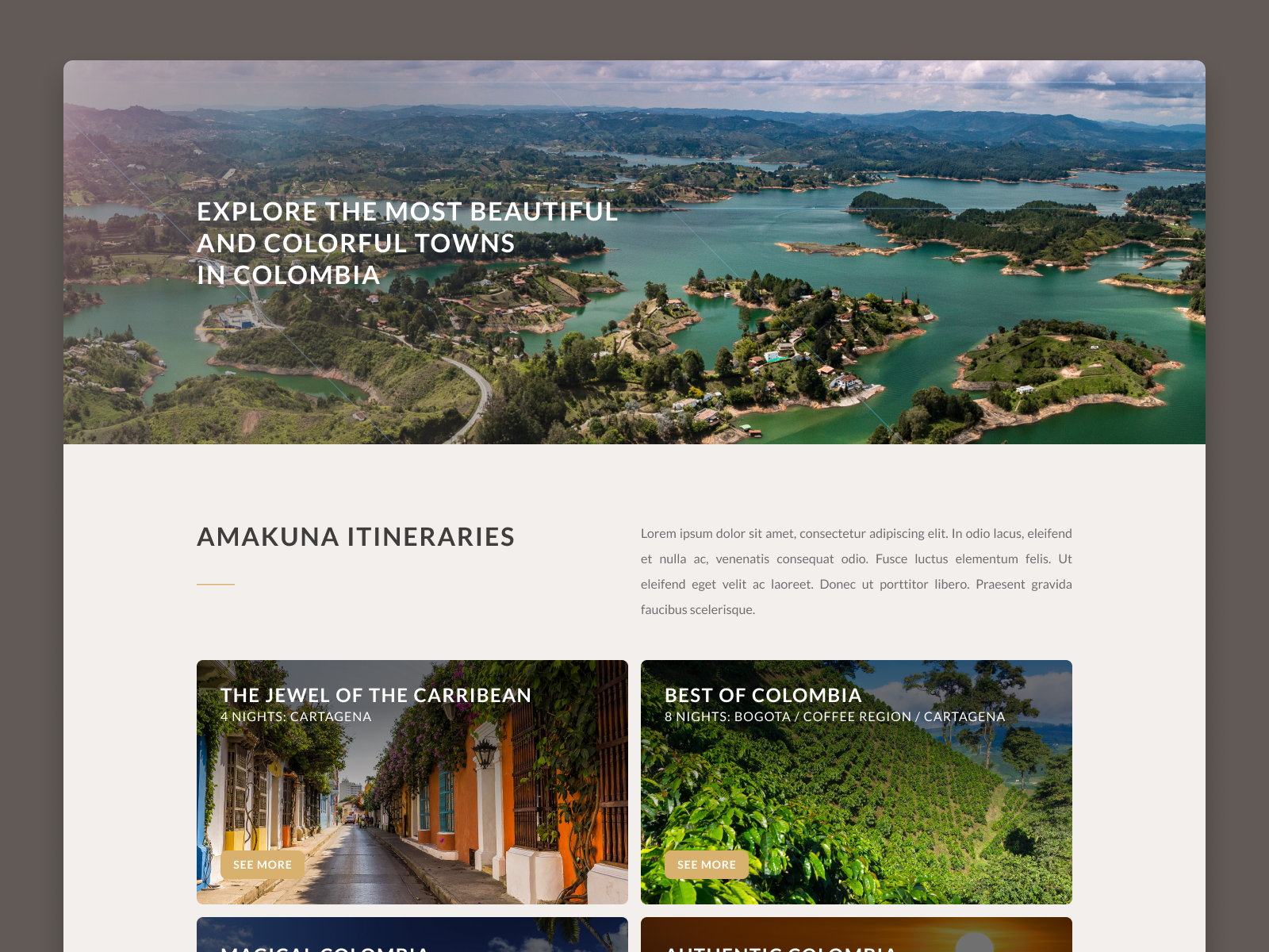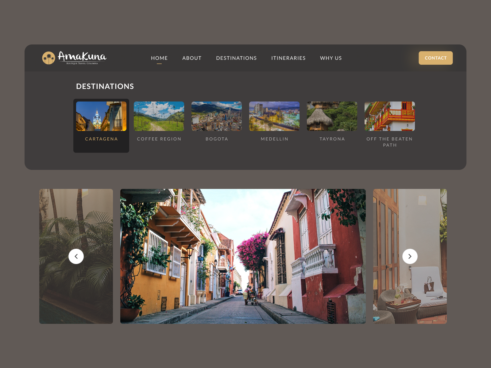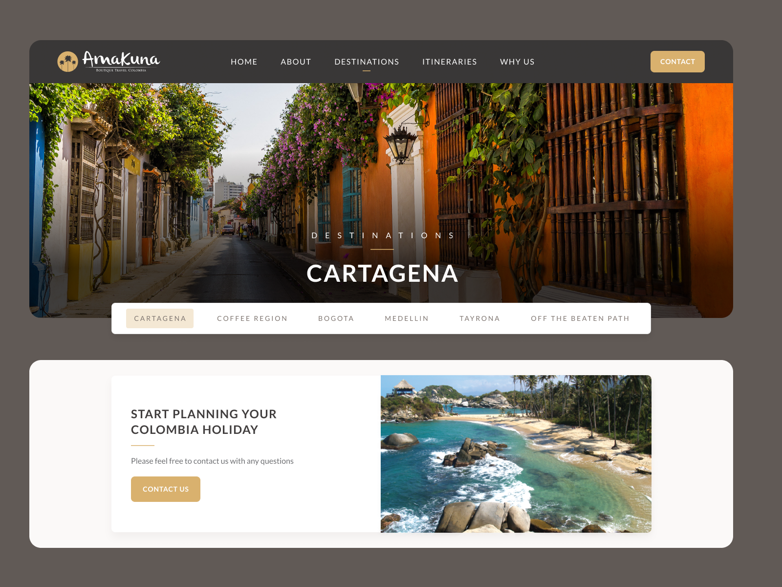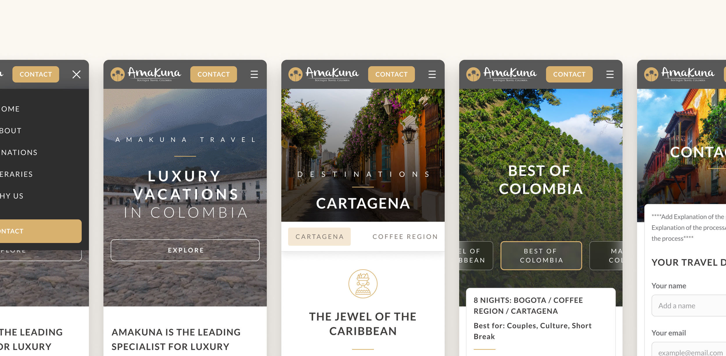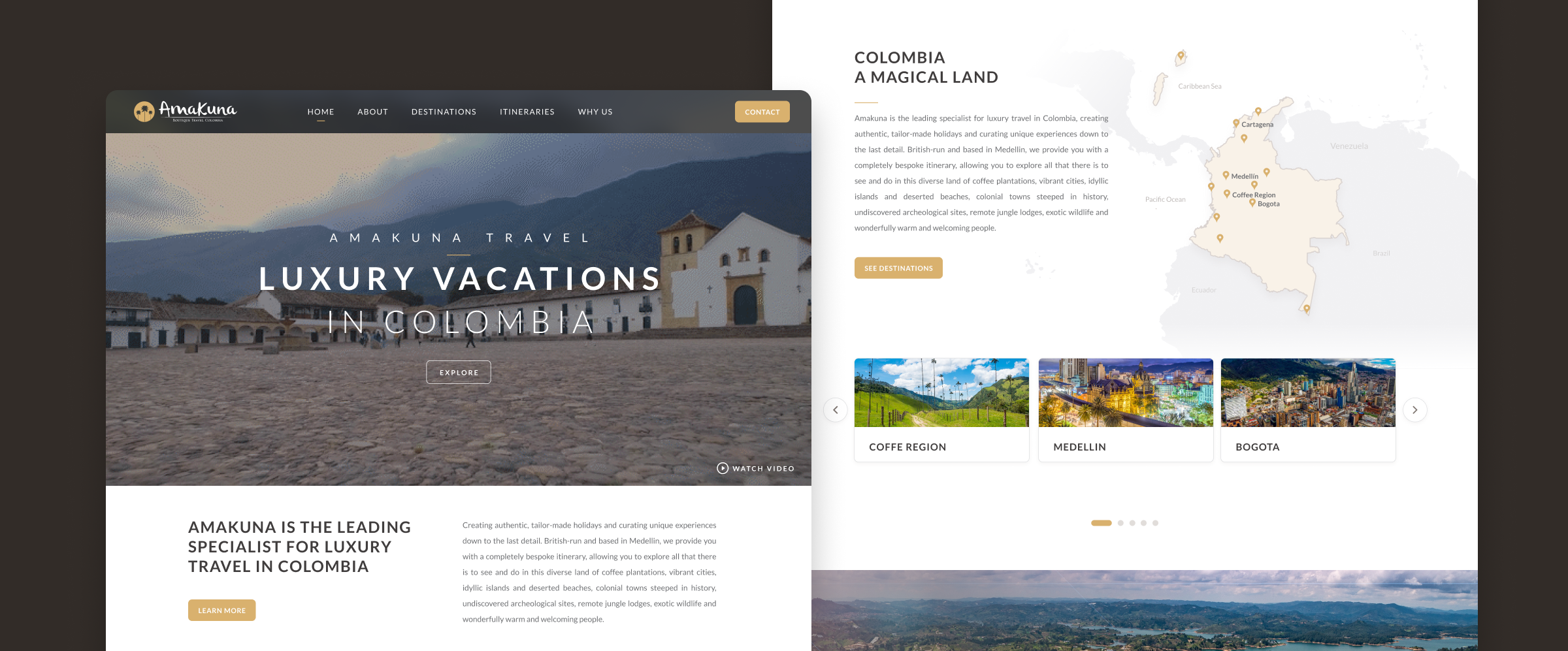 Amakuna is a luxury travel brand specializing in bespoke experiences across Colombia. The website needed to reflect its premium positioning and attention to detail.